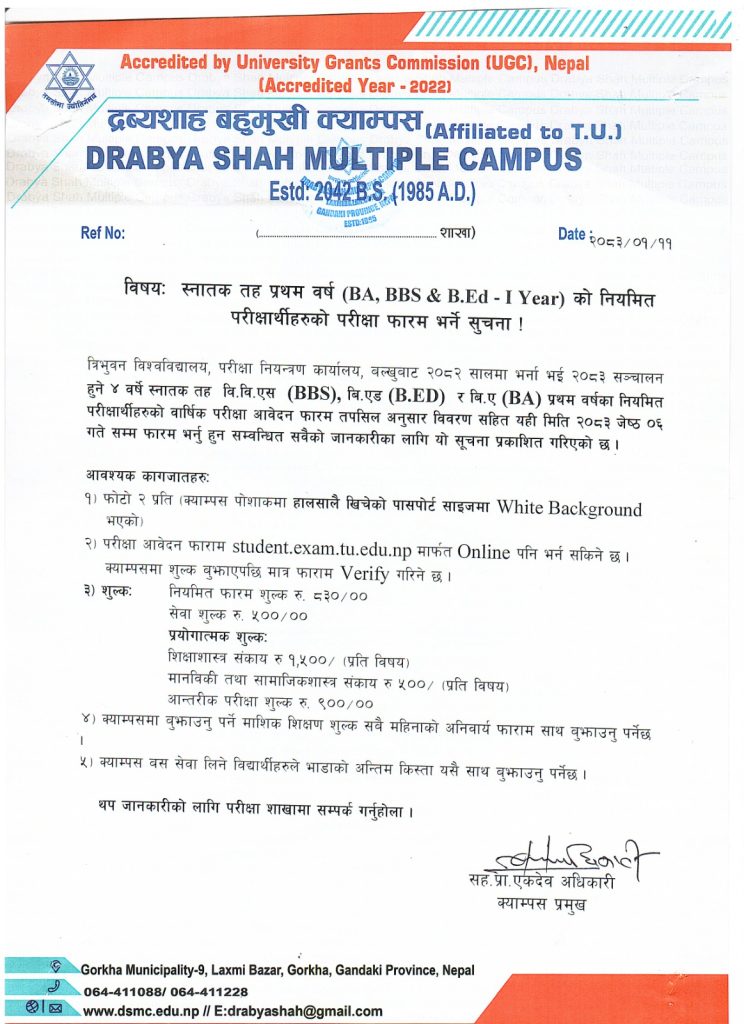 - स्नातक तह प्रथम वर्षको भर्ना सम्बनधी सुचना