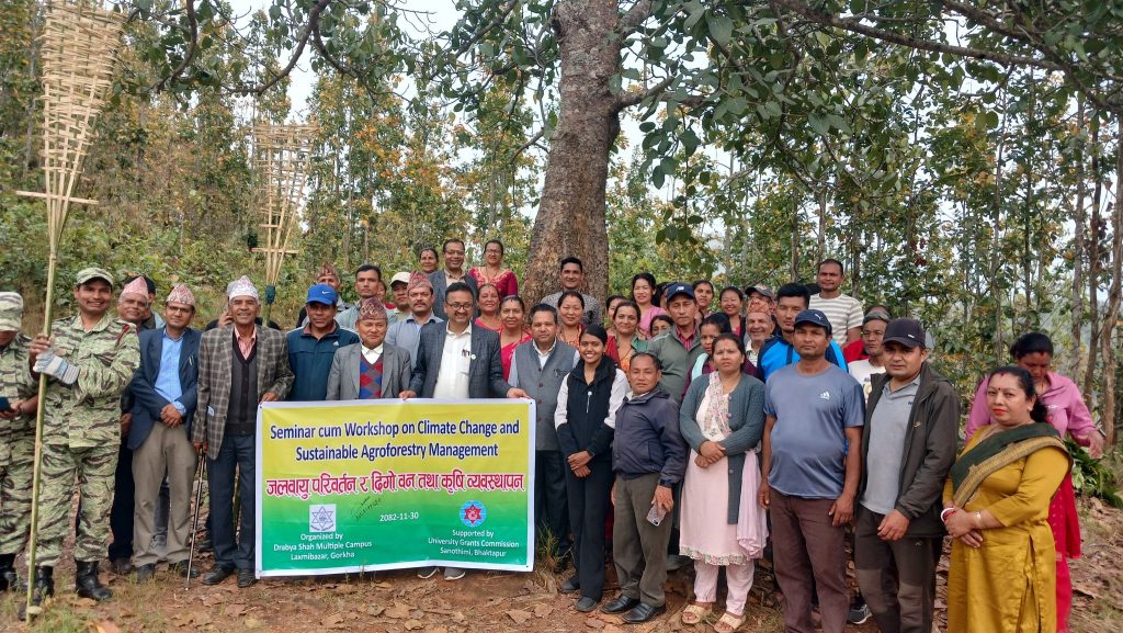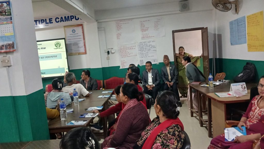 मिति २०८२ फागुन ३० गते यस द्रव्यशाह ब क्याम्पस लक्ष्मीबजार गोरखाको आयोजनामा विश्वविद्यालय अनुदान आयोगको आर्थिक सहयोगमा समुदायमा जलवायु परिवर्तन र दिगो वन तथा कृषि व्यवस्थापन १ दिने कार्यशाला गोष्ठी जिल्ला समन्वय समिति गोरखाका प्रमुख श्री मोहनवहादुर थापामगरको प्रमुख आतिथ्यतामा सम्पन्न भयो । डिभिजन बन कार्यालय, गोरखाका प्रमुख श्री मदन मोहन सालिण्य र कृषि ज्ञानकेन्द्रका प्रमुख श्री कुलप्रसाद तिवारीले कार्यक्रम सहजिकरण गर्नुभएको थियो । क्याम्पस प्रमुख श्री एकदेव अधिकारीको अध्यक्षतामा भएको कार्यक्रममा स्थानिय सामुदायिक बन समुह, कृषकहरूको उल्लेखनीय उपस्थिति रहेको थियो । सोही अवसरमा श्री टक्सारटारी सामुदायिक बन उपभोक्ता समूहको आहाले डाँडामा आगलागी नियन्त्रण र अग्निरेखा बनाउन प्रशिक्षण समेत प्रदान गरिएको थियो । कार्यक्रम प्रभावकारी बनाउन सहयोग गर्नुहुने सबैमा धन्यवाद व्यक्त गर्दछौ ।